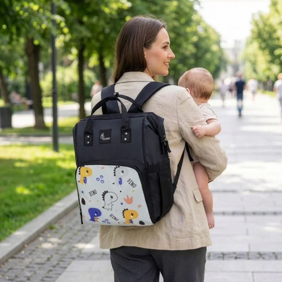 Large Capacity: Equipped with 11 pockets, Caramello Dino diaper bag has an extremely large capacity and wide space to accommodate everything your baby needs on the go