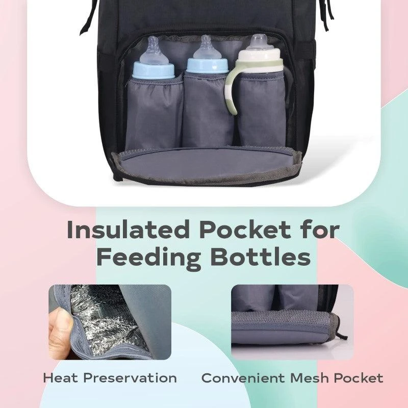 Insulated Front Pockets: Its front pocket has 3 insulated pockets to keep your baby’s milk bottles warm for up to 12 hours*