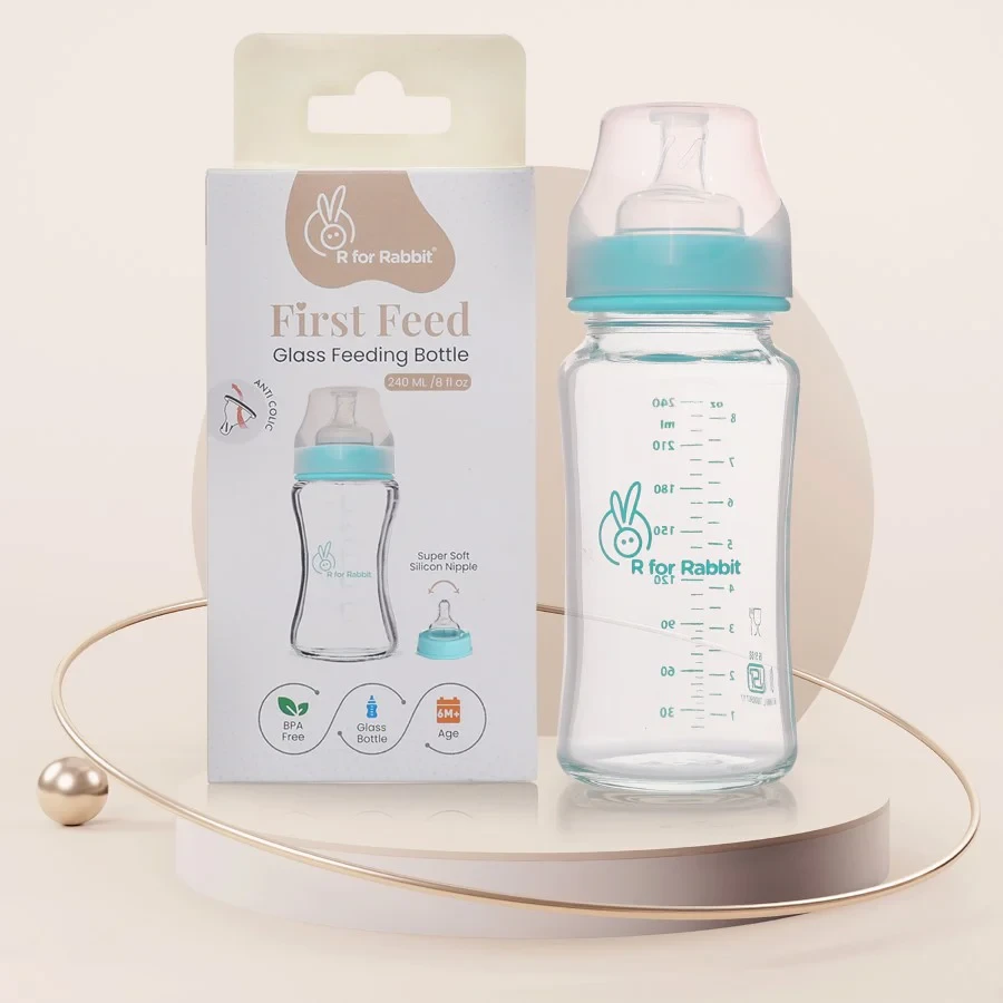 As parents, all we want is to provide best for our babies. R for Rabbit brings to you First Feed Glass Feeding Bottle. This bottle is designed with utmost love and care to make feeding your baby a seamless experience. Made with high-quality glass material and 100% BPA-free silicon nipple, this feeding bottle is made to imitate the actual breast so the baby can latch on with ease and drink conveniently. Its anti-colic feature is one of the most sought-after ones among parents. You can easily store milk in it as well and carry it outdoors without worrying about any leakage. Give your baby the best care with R for Rabbit First Feed Glass Feeding Bottle.