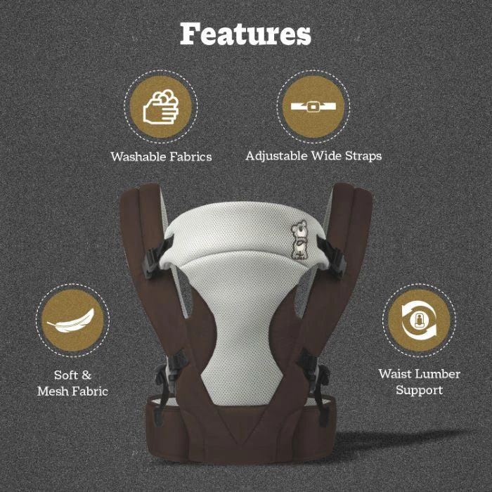 Wide shoulder & lumbar strap: Wide shoulder strap helps proper support and evens out weight on shoulders. Wide lumbar strap provides apt support to your waist and helps to carry your baby easily