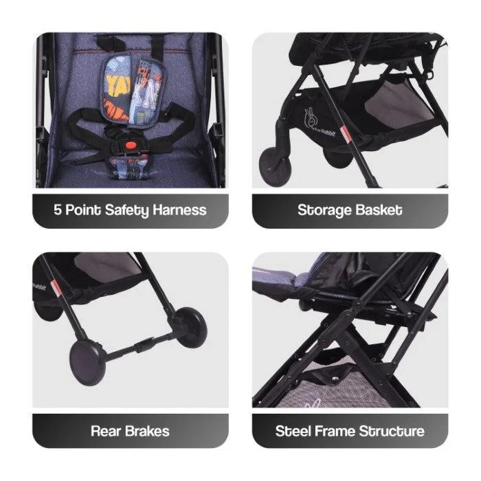 R for Rabbit Pocket Stroller Lite - One Hand Fold, Multi Recline, Light Weight, Travel Friendly, Adjustable Canopy, Steel Frame, Link Brake, 0-3 Years
