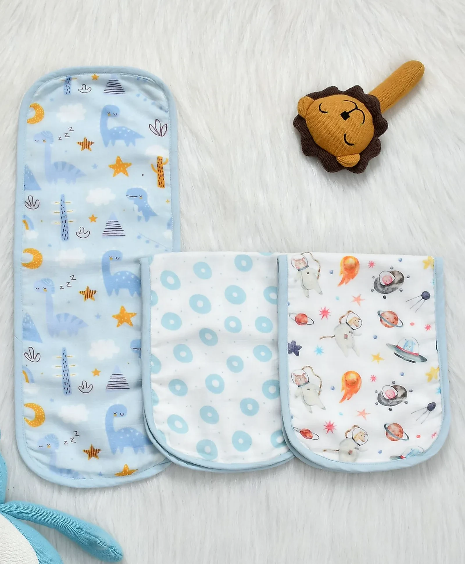 SOVANA 5 Layer Organic Cotton Muslin Reversible Burpads Blue