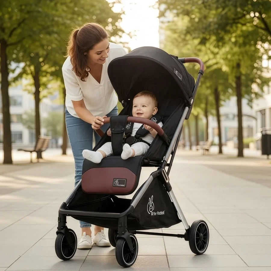 R for Rabbit Street Smart Auto Fold Stroller for Kids, Safety Certified, Travel Friendly, Breathable Mesh, 360-degree rotation, 0-3 Yrs