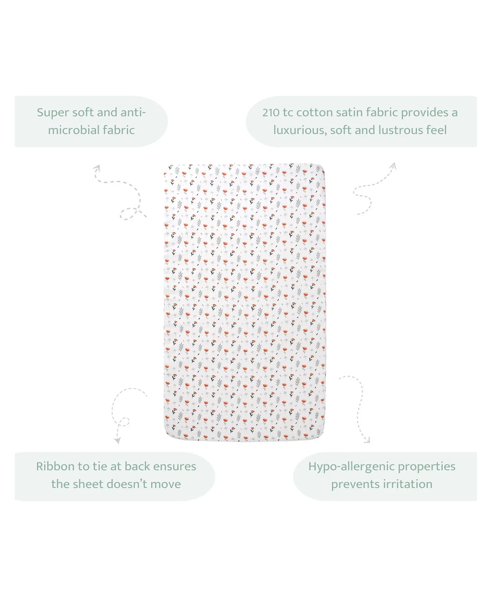 A cribis a baby's ultimate personal space where she should feel most comfortable. So,she can have a good night's sleep and afternoon naps and not become littlemiss-cranky-pants. Our fitted crib sheets are easy to tuck in making you andyour baby fuss-free. They are made of 100% cotton satin fabric giving your babya smooth and soft surface to sleep on. Digitally printed with azo-free dyes,Sovana's Fitted cribsheets are heaven-sent. They are hypo-allergic ensuring irritation-free 24x7comfort for your baby. With bright colours and multiple designs to choose fromSovana has designed its fitted crib sheets to complement a multitude of babyspaces. As a newborn's mother, you haveenough as it is to worry about. Sovana has designed the fitted crib sheets withadditional straps at the back to fit to all kind of baby mattress. Sovana hasdesigned them for you to easily mix and match and give immense comfort to yourbaby. Our bright designs also ensure your baby has a beautiful surface to getthat brain-developing nap when sleeping and neurobiology-developing play timewhen awake.