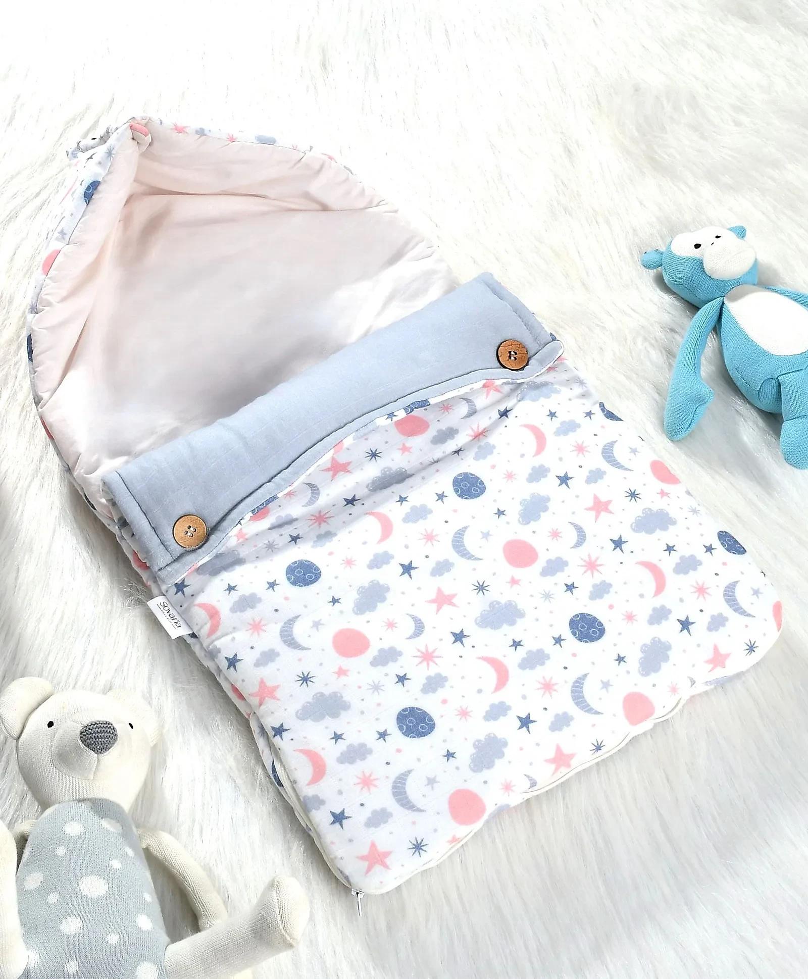3. Zipper closure keeps baby snug and secure.