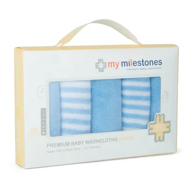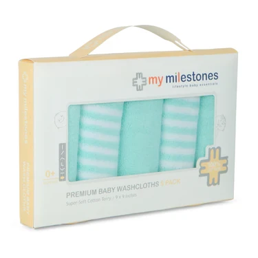 My Milestones Washcloth / Napkin 5Pc Set - Blue Bell 100% cotton